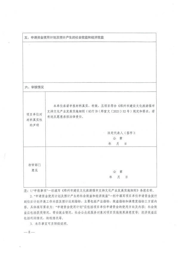 其申报项目需为2020年7月1日至2022年1月31日期间达到《郑州市建设文化旅游强市支持文化产业发展实施细则(试行》扶持条件的已完成项目(重大文化产业项目除外)。